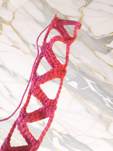 Pièce unique crochetée à la main.
