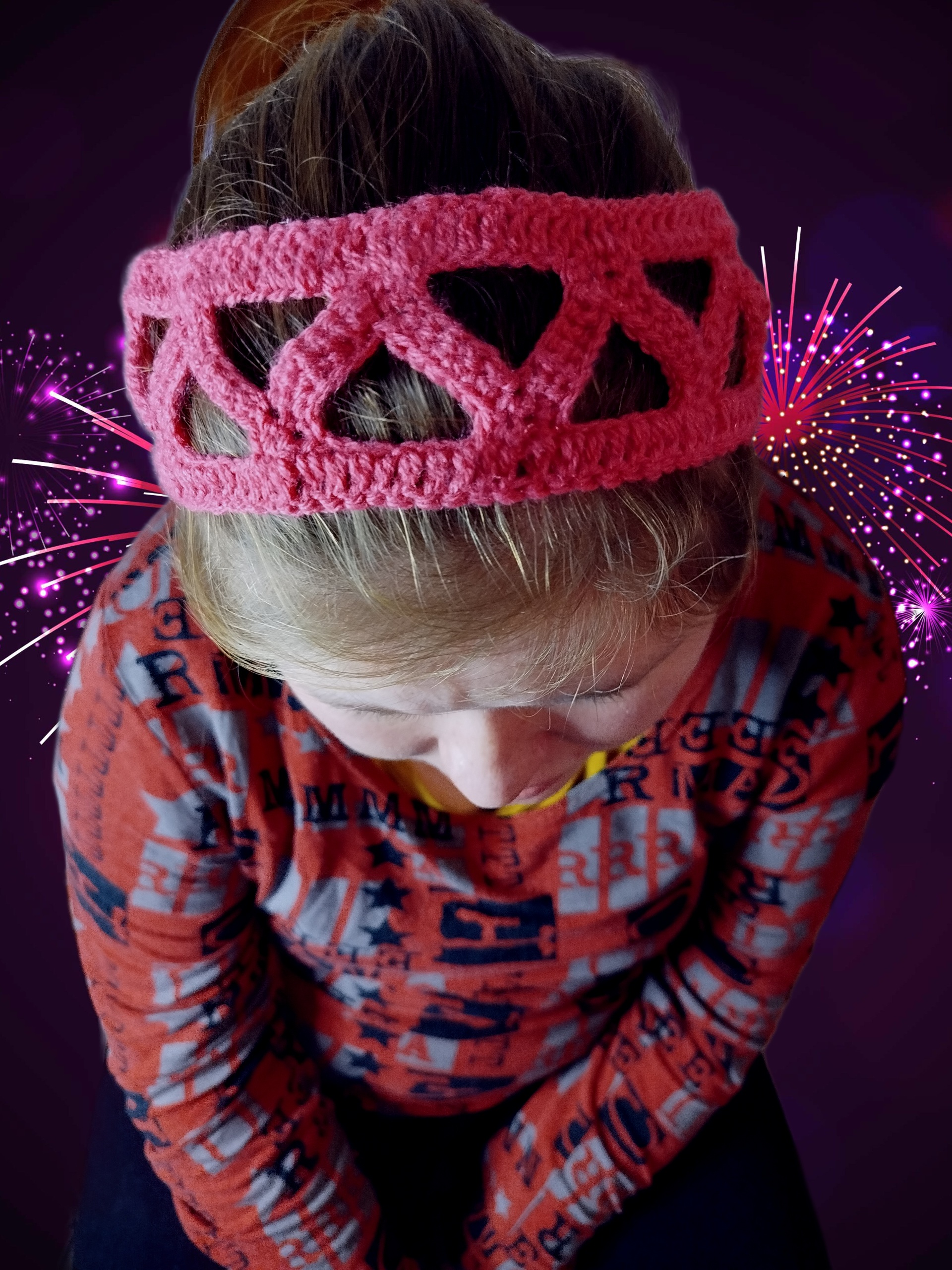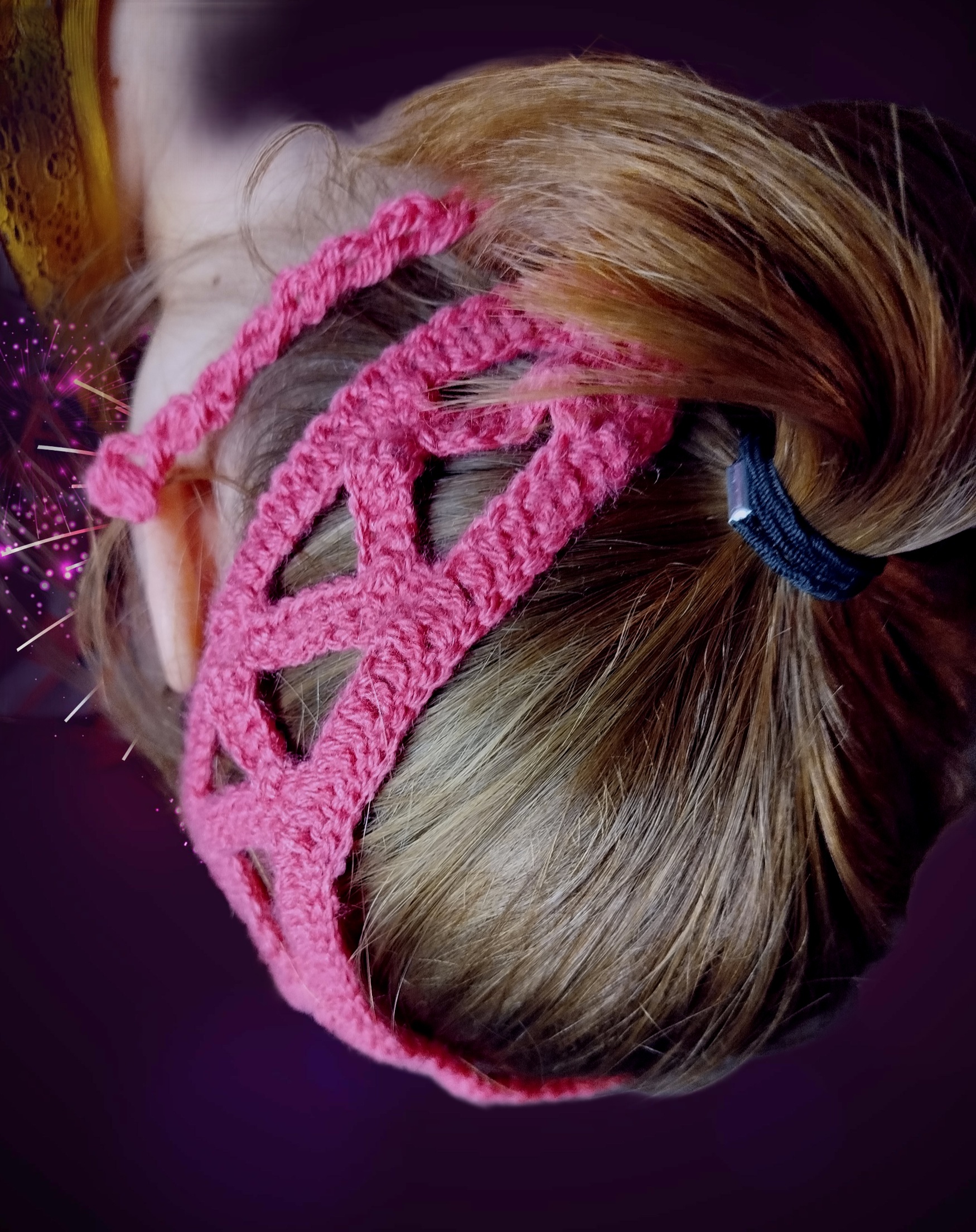 Bandeau femme rose aux motifs triangulaires, noué par liens
