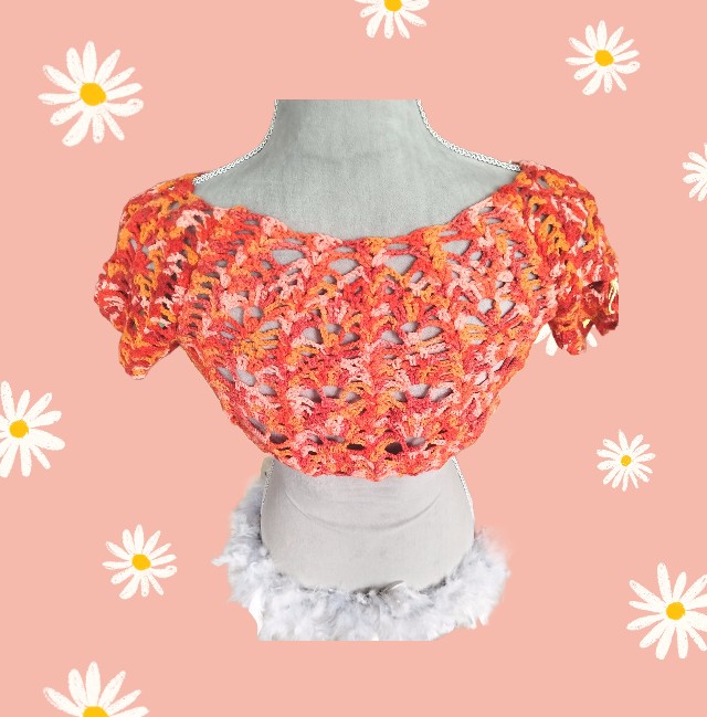 Boléro manches courtes. Fermeture par lien à nouer devant. Il réhaussera vos tenues d’été.