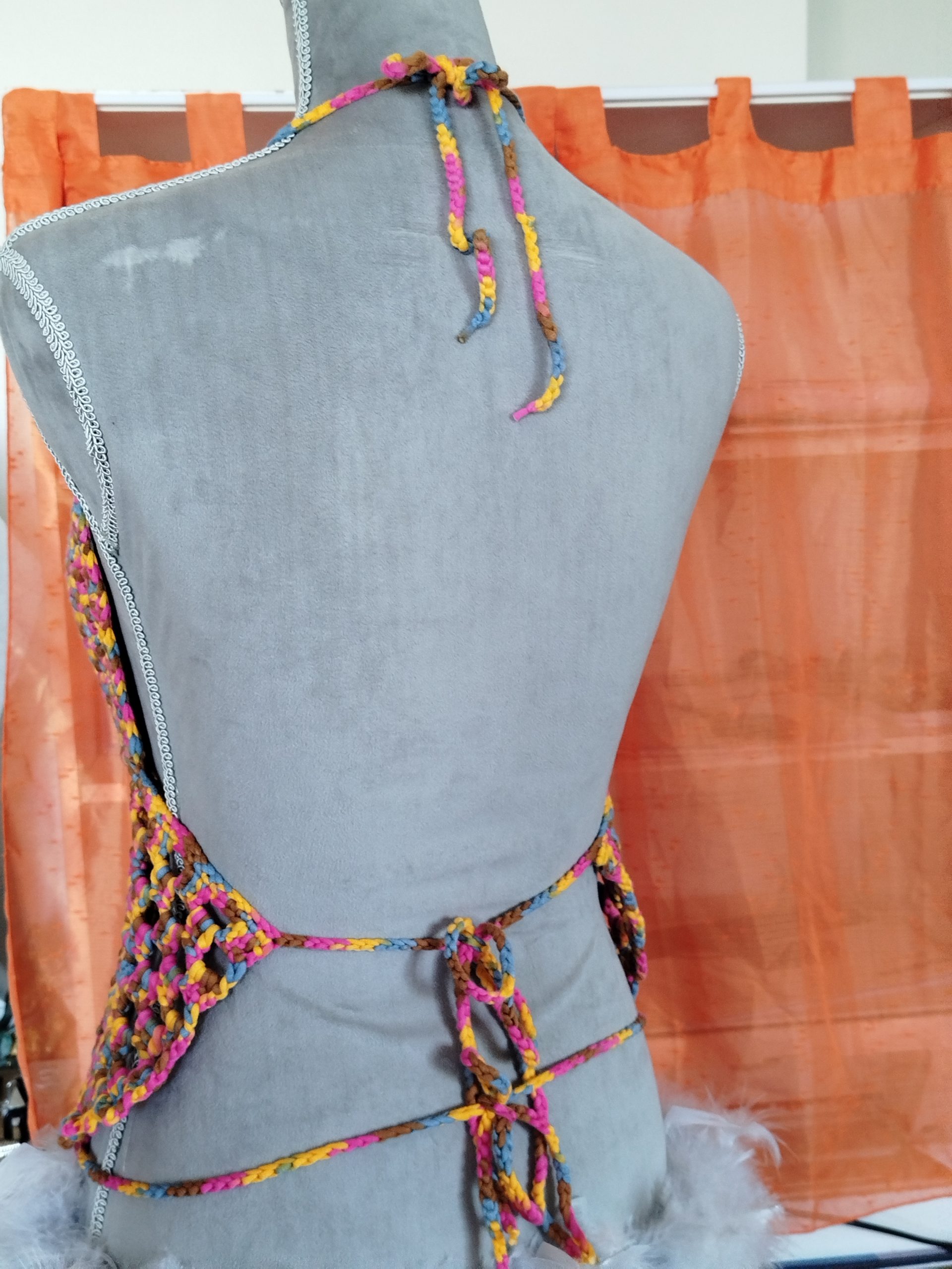 Ajoutez une touche colorée à votre tenue avec Débardeur col en V, noué par liens derrière.