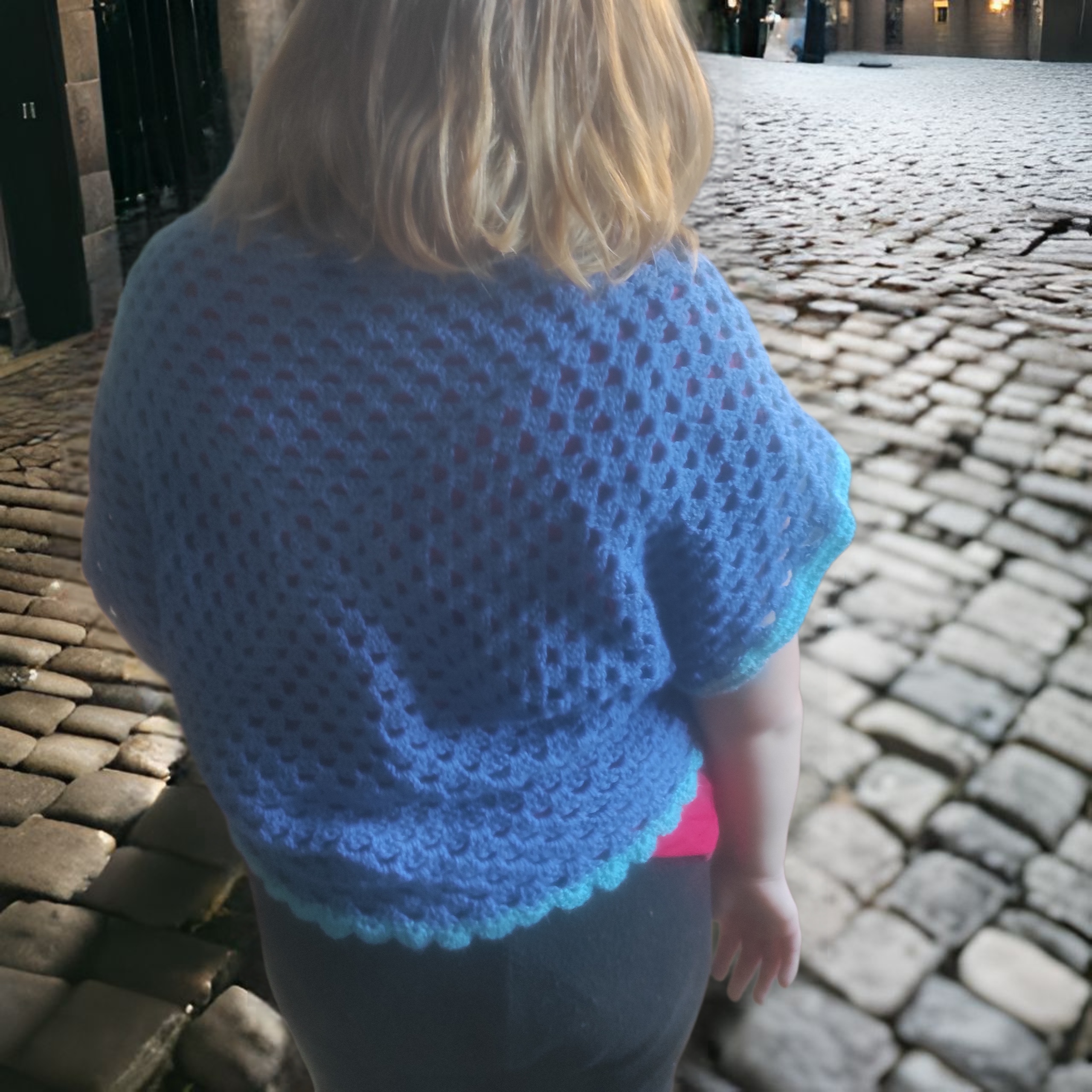 Ce gilet crocheté à la main, peut se porter dans diverses occasions, les soirs frais d’été, ou bien devant la cheminée. Pièce unique.