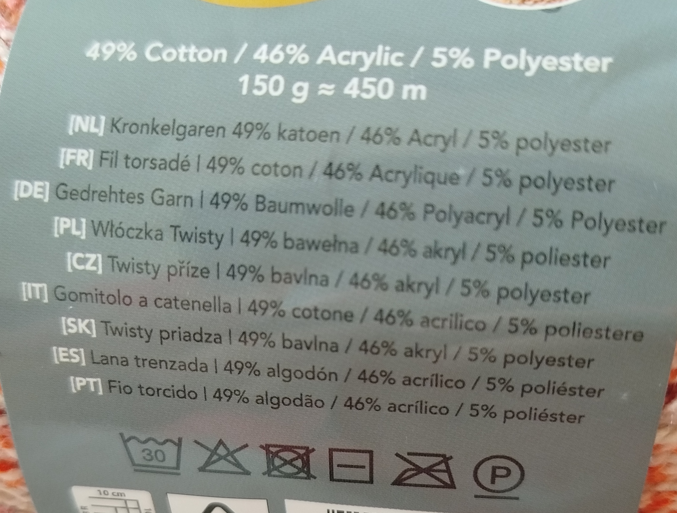 Matière : 49% coton, 46% acrylique, 5% polyester
