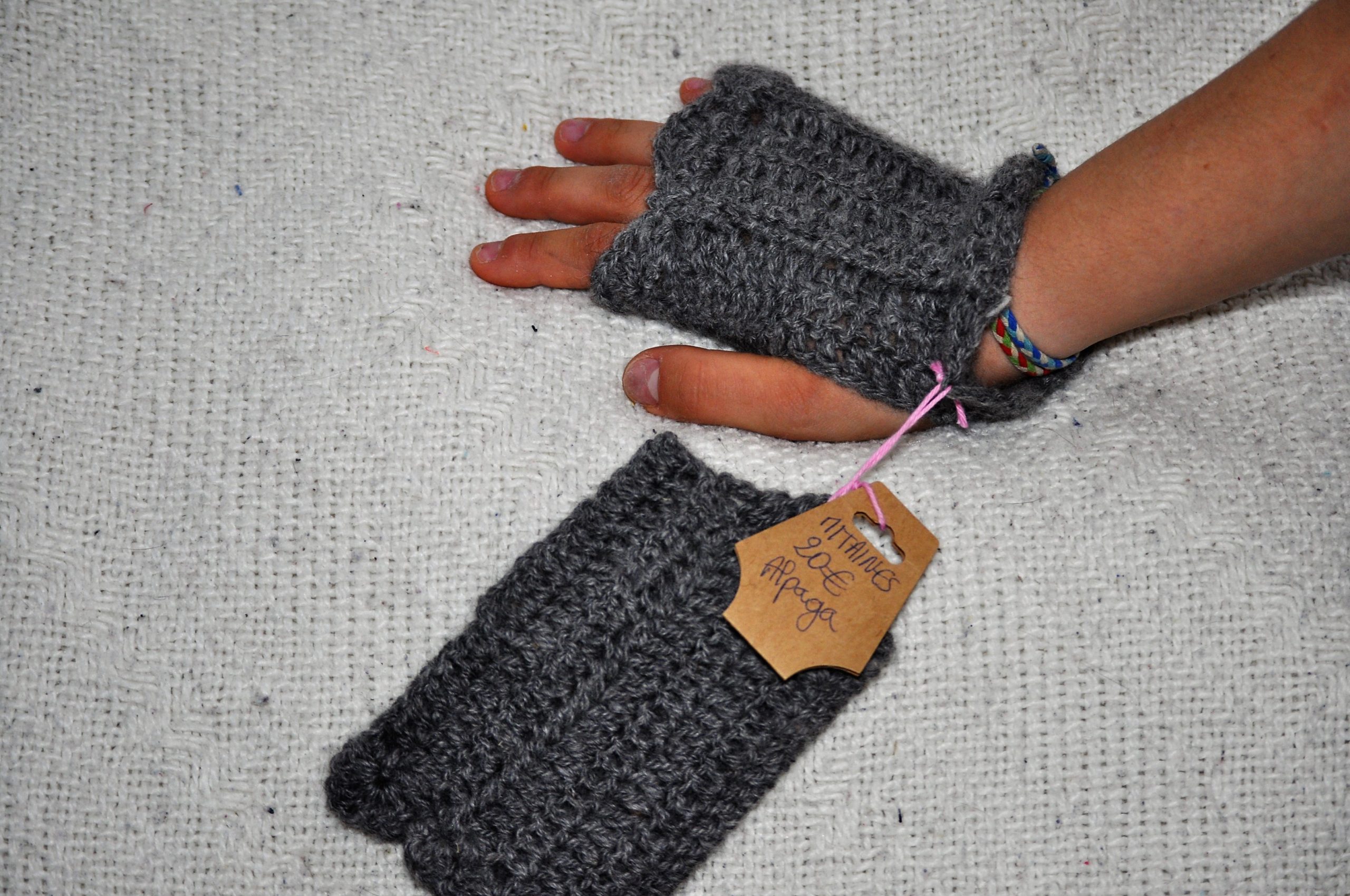 Mitaines toutes douces et bien chaudes en laine d’alpaga qui vient de chez Lama Loisirs à Mamirolle dans le Doubs.
